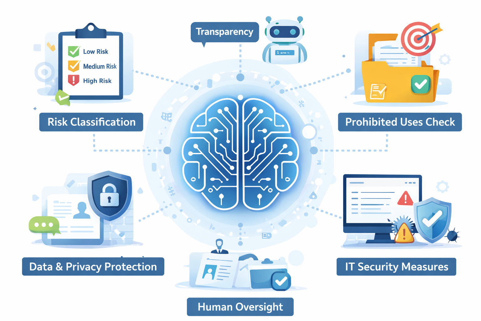 - Ensure GDPR-compliant data processing agreements with AI vendors